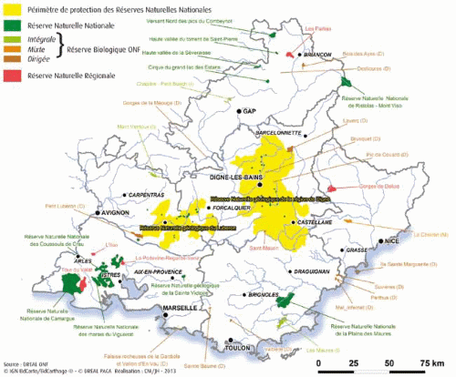 La région PACA compte 16 réserves naturelles - (Site DREAL PACA) en 2012 : 12 réserves naturelles nationales et 6 réserves naturelles régionales.