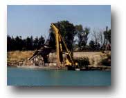 Les extractions de roches meubles en eau permettent souvent d’enlever des alluvions sur les terrasses des cours d’eau avec une mise à jour de la nappe phréatique. On utilise couramment pour ces travaux des pelles ou des dragues.