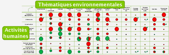 Des analyses AFOM croisées entre les thématiques environnementales et humaines ont ensuite permis de classifier l’impact positif, négatif ou neutre des activités humaines sur les thématiques environnementales. La dynamique d’évolution de ces impacts ont aussi été pris en compte.